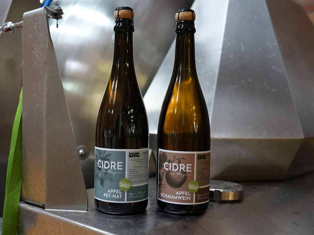 Aktuell werden aus den Äpfeln von Streuobstbeständen Apfelsaft oder Destillate hergestellt und nur sehr vereinzelt der alkoholarme, prickelnde Cidre, also Apfelschaumwein. Das soll sich ändern! Im Rahmen des Bayerischen Streuobstpaktes sollen in einem Projekt an der Bayerischen Landesanstalt für Weinbau und Gartenbau (LWG) in Veitshöchheim hochwertige, spritzige Cidre-Getränke mit wenig Alkohol entwickelt werden – zum Erhalt der Streuobstwiesen und zur Stärkung der regionalen Erzeugung. Es ist bereits der dritte Jahrgang Apfelschaumweine an der LWG.