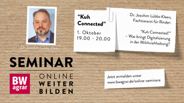 Erfahren Sie in diesem kostenlosen Online-Seminar am 1. Oktober, welche Möglichkeiten Digitalisierung im Milchviehstall bietet. Melden Sie sich jetzt an!