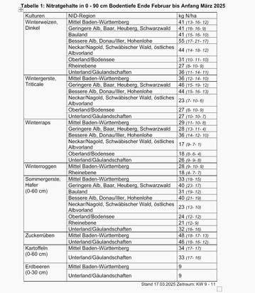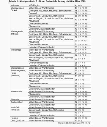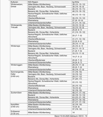Um frühzeitig den N-Düngebedarf Ihrer Kulturen in diesem Frühjahr abschätzen zu können (z. B. zur Ermittlung des notwendigen Düngemittelzukaufs), stellen wir Ihnen Mittelwerte vom jeweiligen Beginn der NID-Erhebungen (Ausnahme Hopfen, hier werden die Werte der gesamten Saison dargestellt) der...