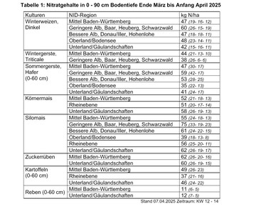 Die aktuellen Stickstoffmesswerte zeigen einen weiteren Anstieg der Nitratgehalte in den Böden an, im landesweiten Mittel auf 54 kg N je Hektar. Ursache dafür sind die zunehmende Bodenerwärmung und die Umstellung vieler Proben auf Sommerungen. Auch bei Winterungen sowie Flächen für Mais und andere...