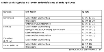 Der September war sehr nass, die Niederschlagsmengen lagen deutlich über dem zehnjährigen Mittel. Im November und Dezember fiel weniger Niederschlag als im zehnjährigen Mittel. Dementsprechend wurden in den ersten Nitratproben 2025 vergleichsweise hohe Werte gemessen. Der landesweite Startwert im...