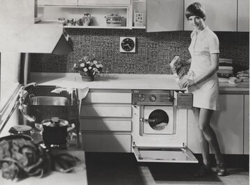 Mit einer revolutionären "Ein-Knopf-Schaltung und stufenloser Temperaturwahl bei der die Hausfrau die Temperatur der Waschlauge selbst bestimmt" warb Bauknecht in den 1960er Jahren auch bei Landfrauen für den Wasch-Vollautomaten.