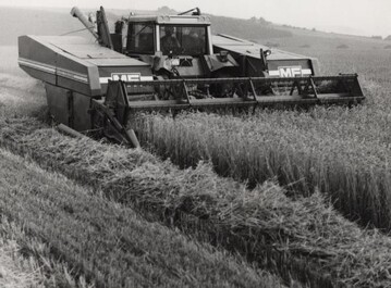 Massey Ferguson stellt Anfang der 80er-Jahre einen Schnellkupplungs-Anbaumähdrescher vor. Er hat eine Schnittbreite von 5,50 Meter und verfügt über zwei Dreschwerke mit je 1,03 Meter Breite.
