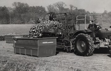 Bei der Zuckerrübenernte waren schon immer die Transportkosten ein Thema. Die Maschinenfabrik Fahr entwickelte daher ein Fahrcontainer-System. Das Containerfahrzeug übernahm die Rolle mehrerer Transportwagen, ausgewechselt wurden nur die Behälter.