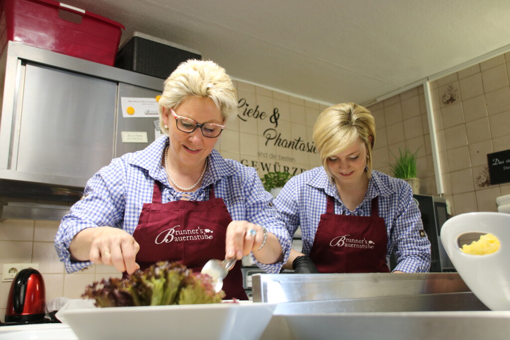 Ihr Talent konnte Caroline Brunner schon bei der Deutschen-Juniorenmeisterschaft der Hauswirtschaft 2016 in Berlin beweisen und den Titel „Deutsche Juniorenmeisterin der Hauswirtschaft“ nach Hause bringen. Nicht zuletzt deshalb ist nicht Mutter Traudl oder Oma Lore, die für ihren Kartoffelsalat über die Landesgrenzen hinaus bekannt ist, Küchenchefin von Brunners Bauernstube, sondern die Jüngste im Bunde, Caroline Brunner. Sie ist es, die traditionellen, schwäbischen Speisen modernen Zeitgeist einhaucht und neu interpretiert. Ob schwäbische Tapas, besagte panierte Maultaschen oder Schweinefilet auf Albwiesenheu, die Kreationen von Caroline Brunner sind vielseitig und machen Lust auf eine kulinarische Reise über die Schwäbische Alb. Ganze Abende können Brunners Gäste bei Mottoveranstaltungen in der Bauernstube verbringen, etwa bei einem Candle-Light-Dinner oder dem italienischen Abend am mediterranen Buffet aus regionalen Zutaten.