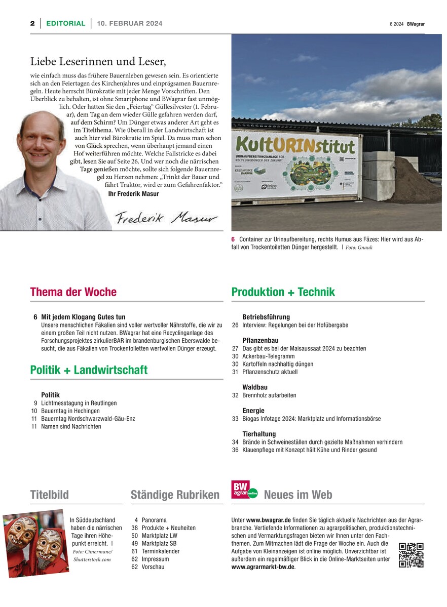 Gesamtes Inhaltsverzeichnis anzeigenSie haben ein BWagrar Print-Abo? Rabattiertes BWagrar Digital-Upgrade bestellen