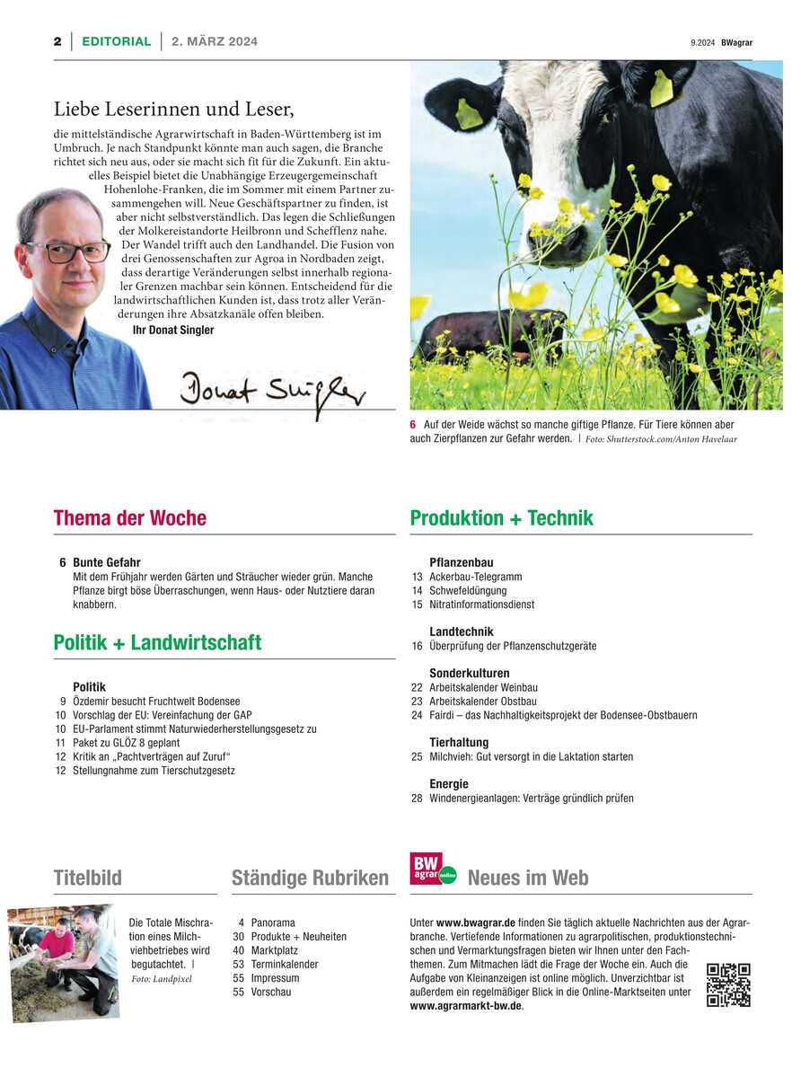 Gesamtes Inhaltsverzeichnis anzeigenSie haben ein BWagrar Print-Abo? Rabattiertes BWagrar Digital-Upgrade bestellen