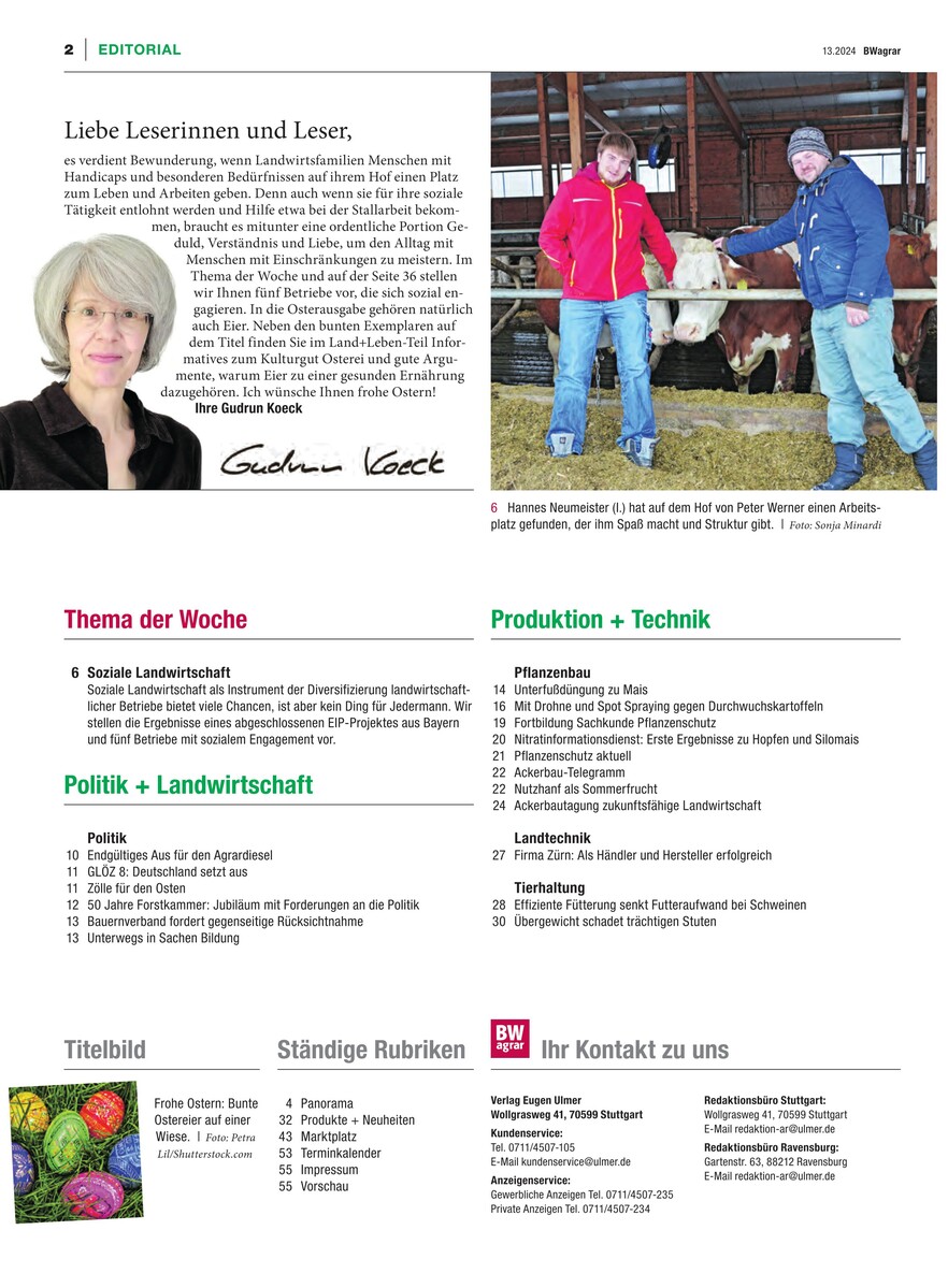 Gesamtes Inhaltsverzeichnis anzeigenSie haben ein BWagrar Print-Abo? Rabattiertes BWagrar Digital-Upgrade bestellen