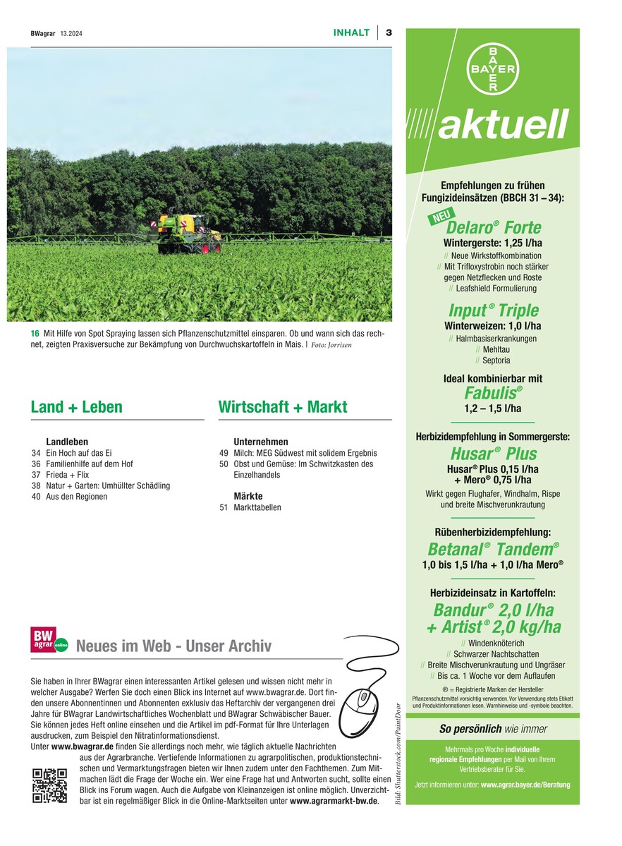 - Die Regionalausgabe BWagrar als E-Paper 3 Tage vor der gedruckten Ausgabe
