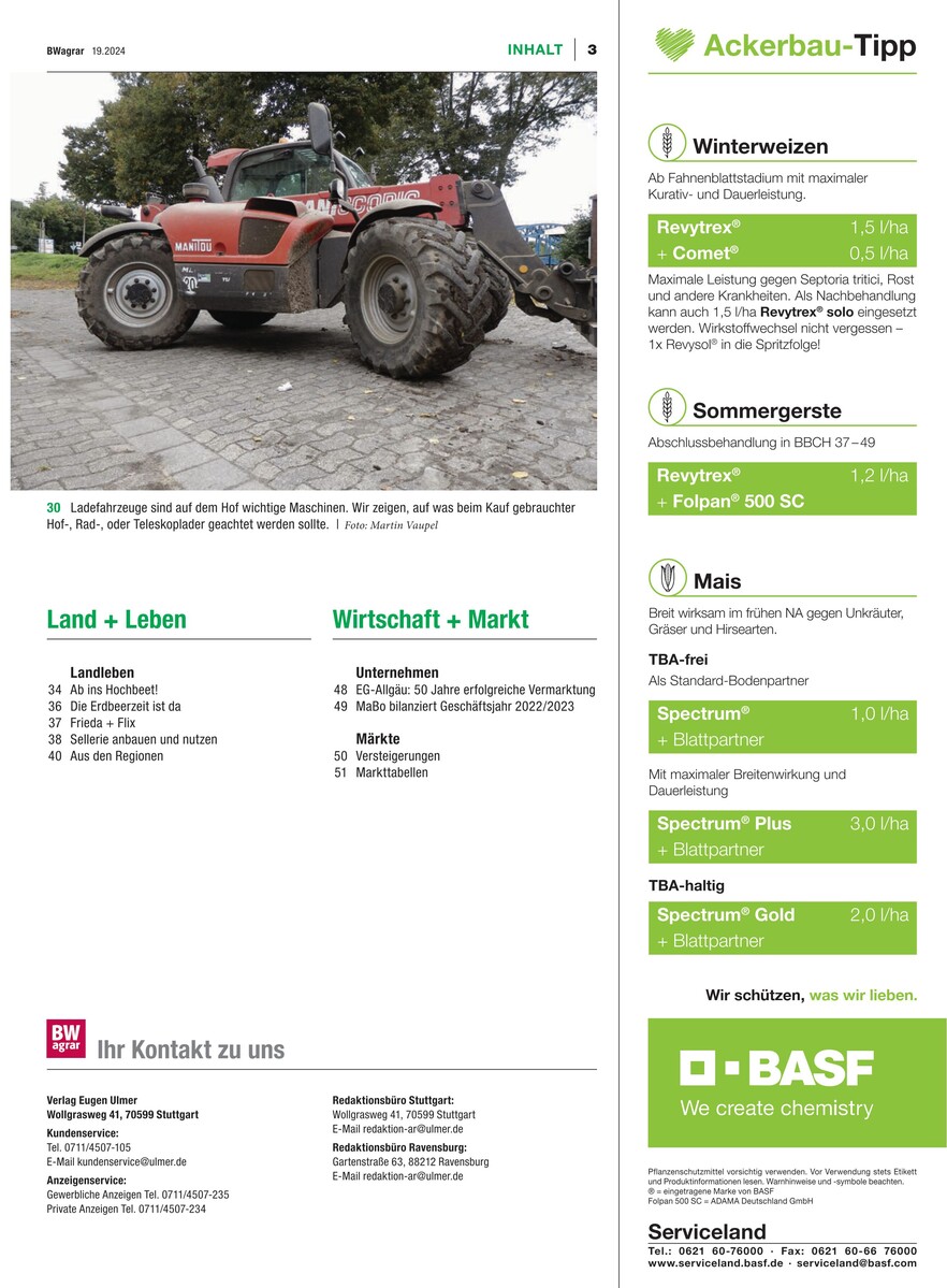 - Die Regionalausgabe BWagrar als E-Paper 3 Tage vor der gedruckten Ausgabe
