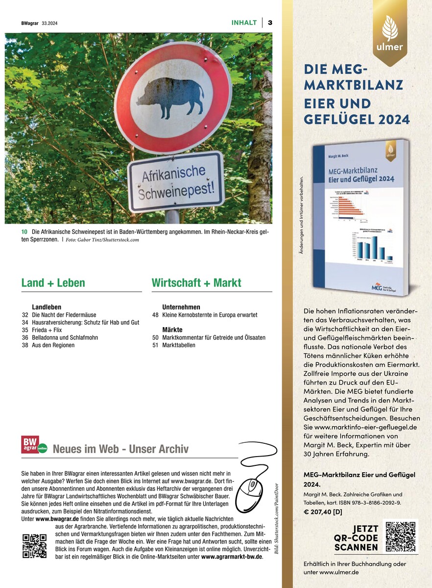 Gesamtes Inhaltsverzeichnis anzeigenSchw�bischer Bauer 33/2024
