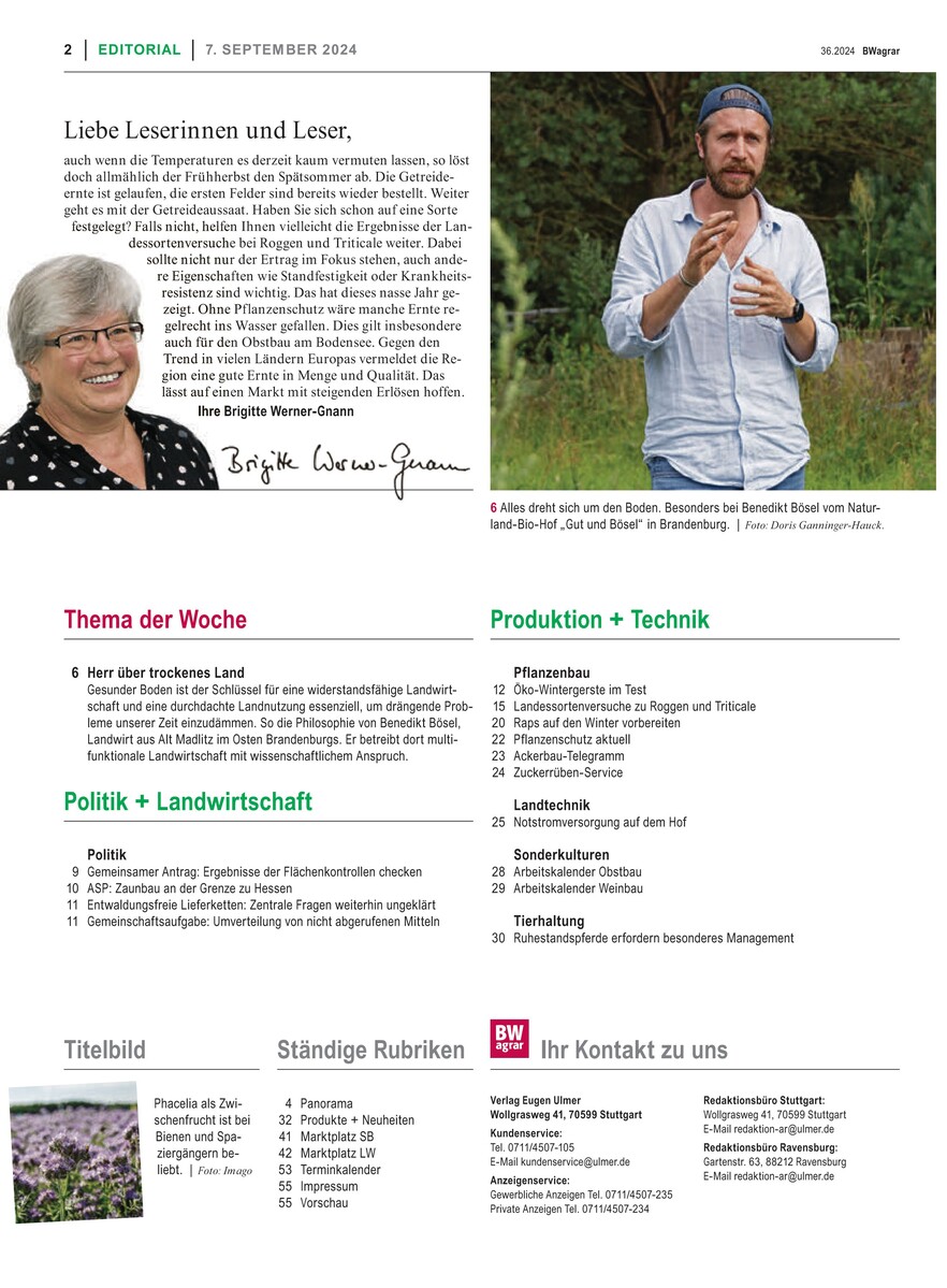Gesamtes Inhaltsverzeichnis anzeigenSie haben ein BWagrar Print-Abo? Rabattiertes BWagrar Digital-Upgrade bestellen