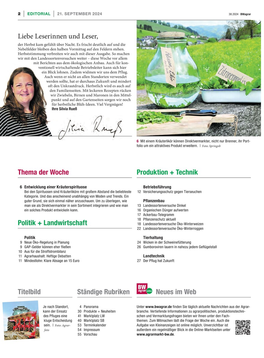 Gesamtes Inhaltsverzeichnis anzeigenSchw�bischer Bauer 38/2024