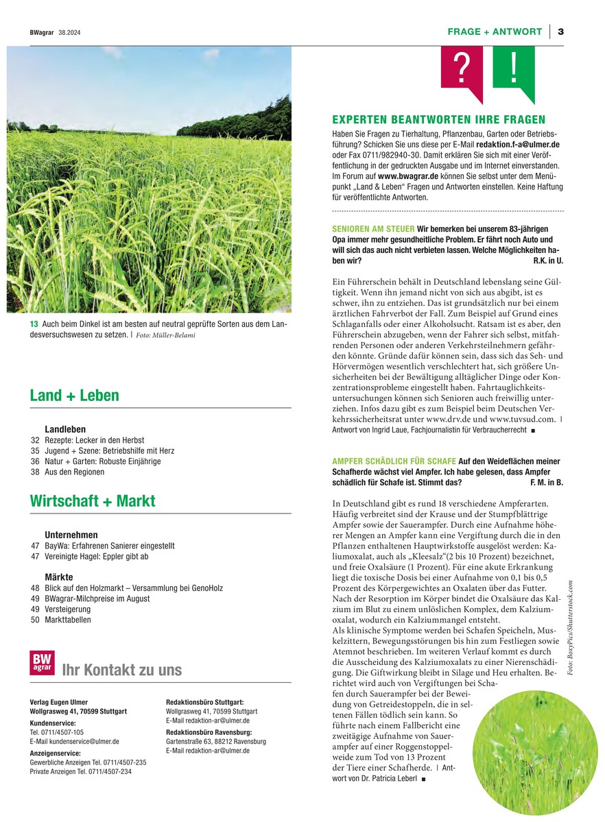 Gesamtes Inhaltsverzeichnis anzeigenSie haben ein BWagrar Print-Abo? Rabattiertes BWagrar Digital-Upgrade bestellen