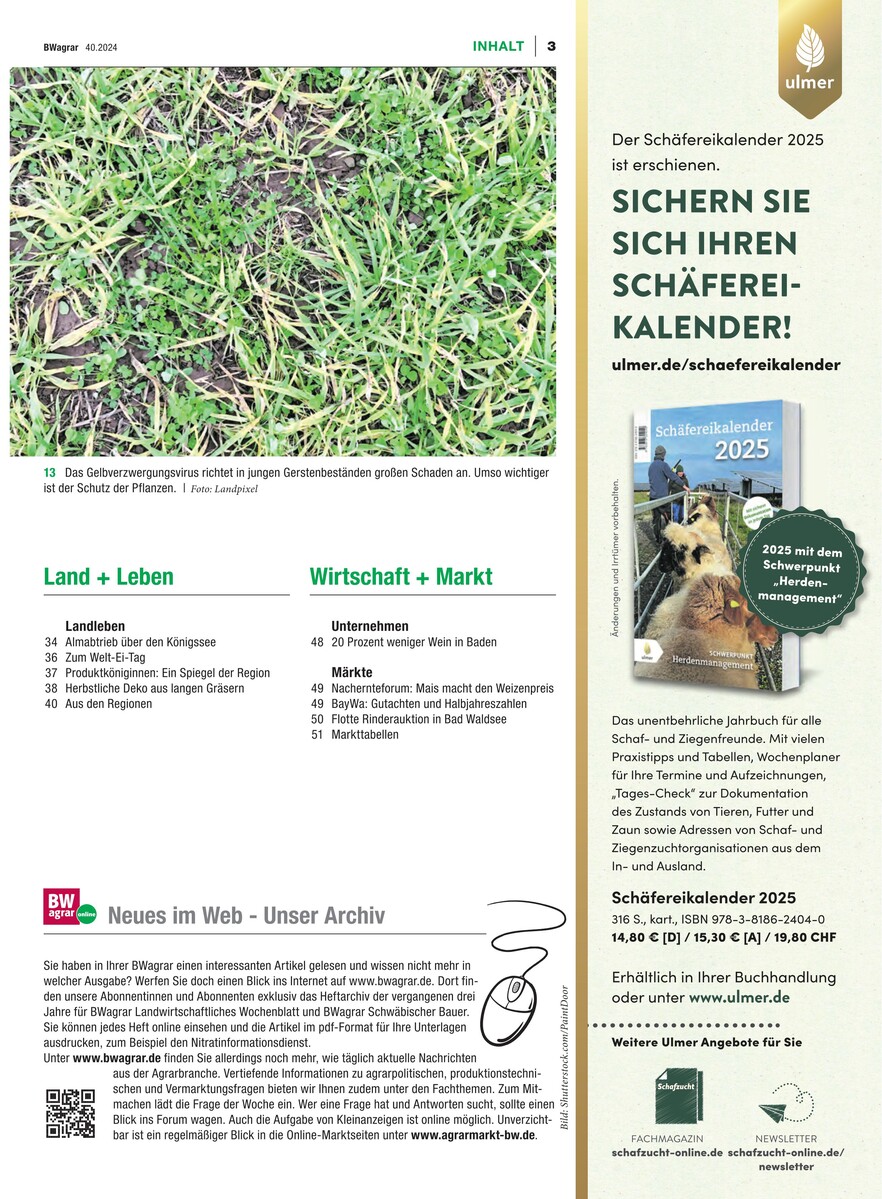 Gesamtes Inhaltsverzeichnis anzeigenSchw�bischer Bauer 40/2024