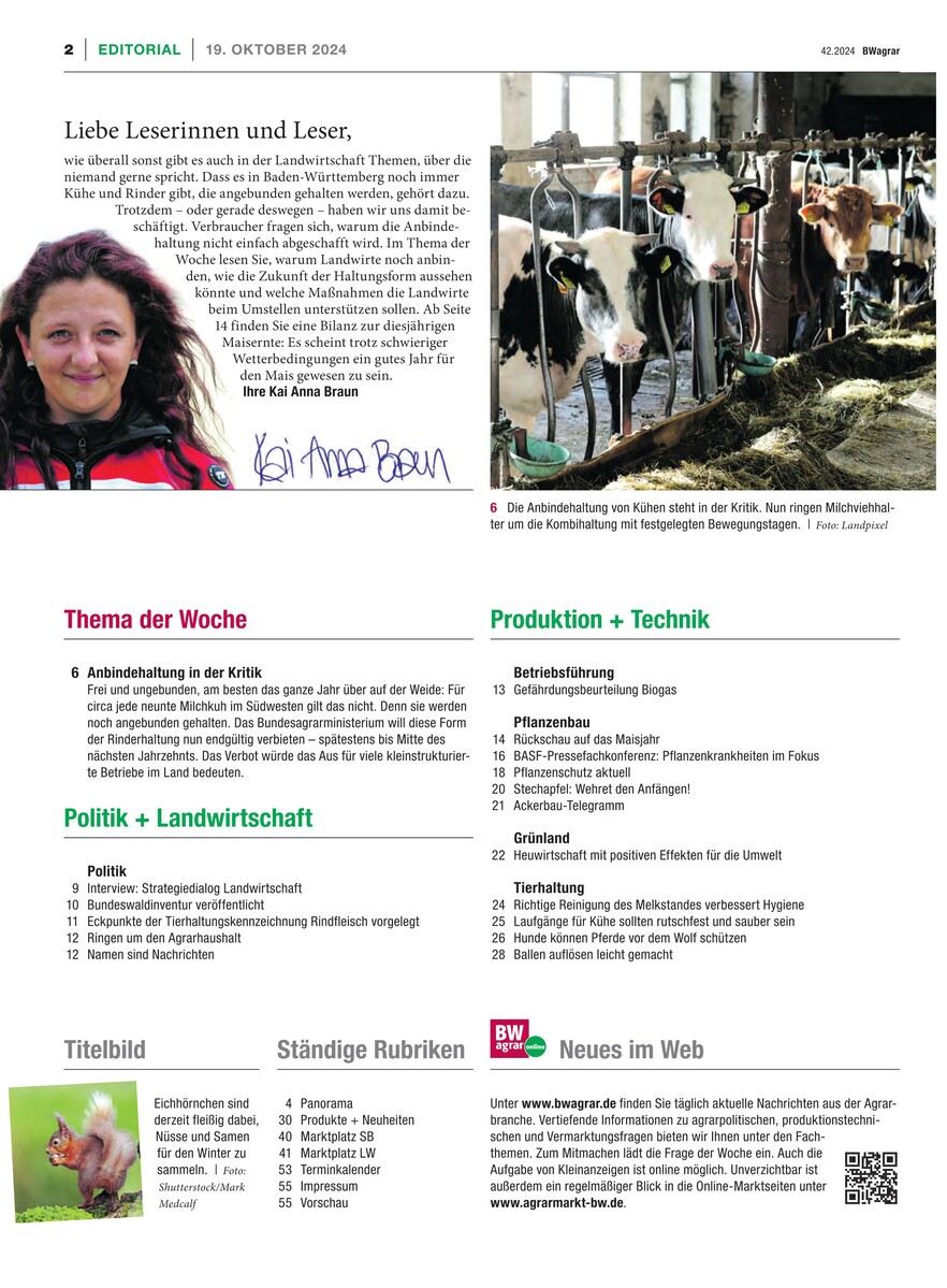 Gesamtes Inhaltsverzeichnis anzeigenSie haben ein BWagrar Print-Abo? Rabattiertes BWagrar Digital-Upgrade bestellen