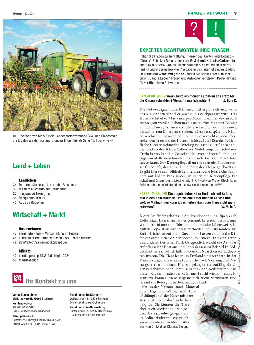 - Die Regionalausgabe BWagrar als E-Paper 3 Tage vor der gedruckten Ausgabe
