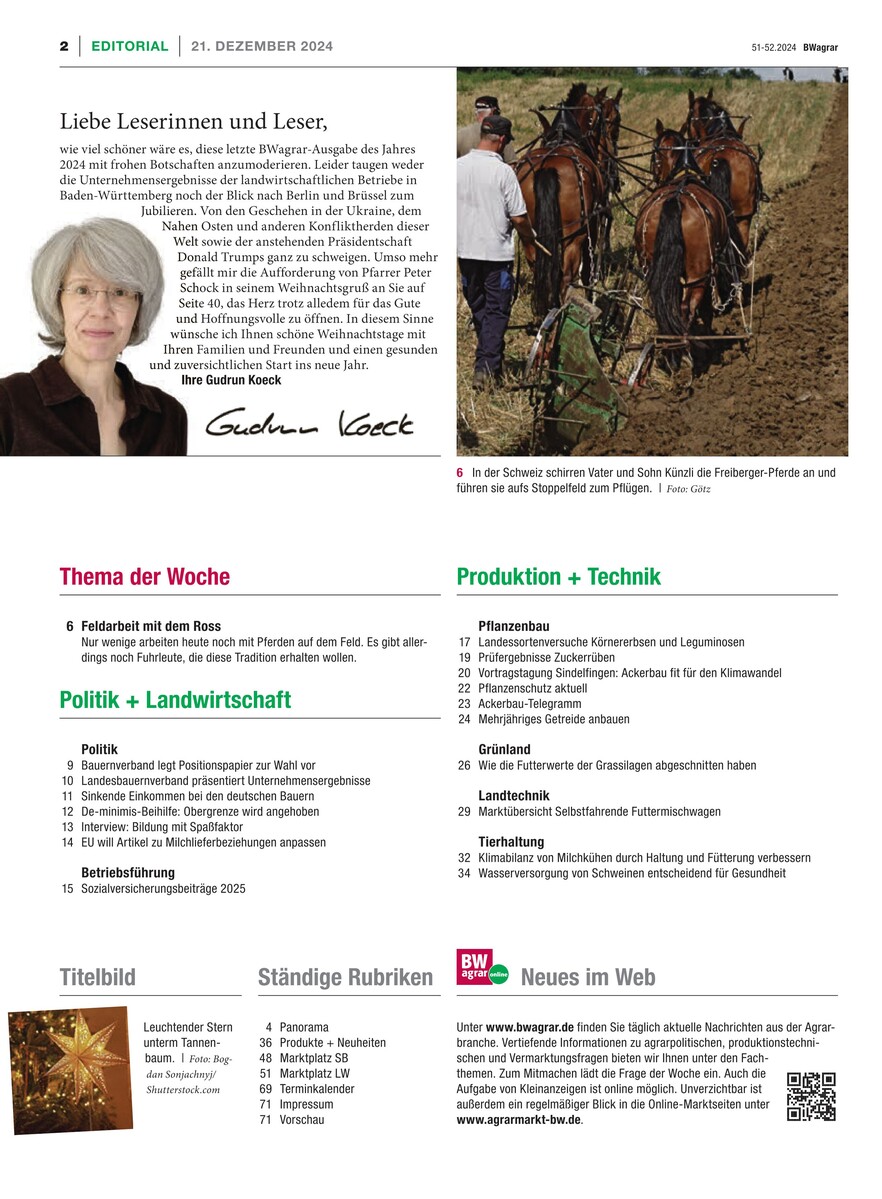 Gesamtes Inhaltsverzeichnis anzeigenSie haben ein BWagrar Print-Abo? Rabattiertes BWagrar Digital-Upgrade bestellen
