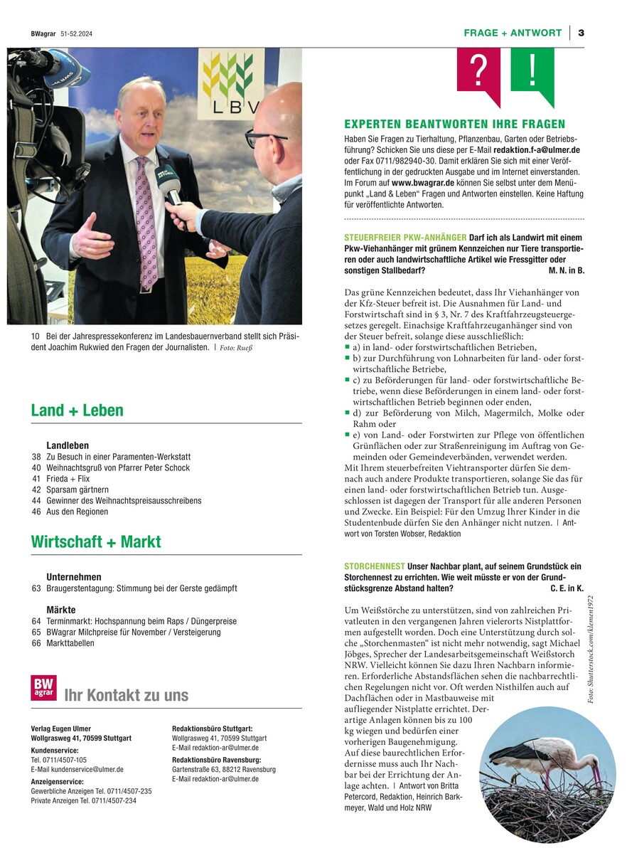 Gesamtes Inhaltsverzeichnis anzeigenSchw�bischer Bauer 51/2024