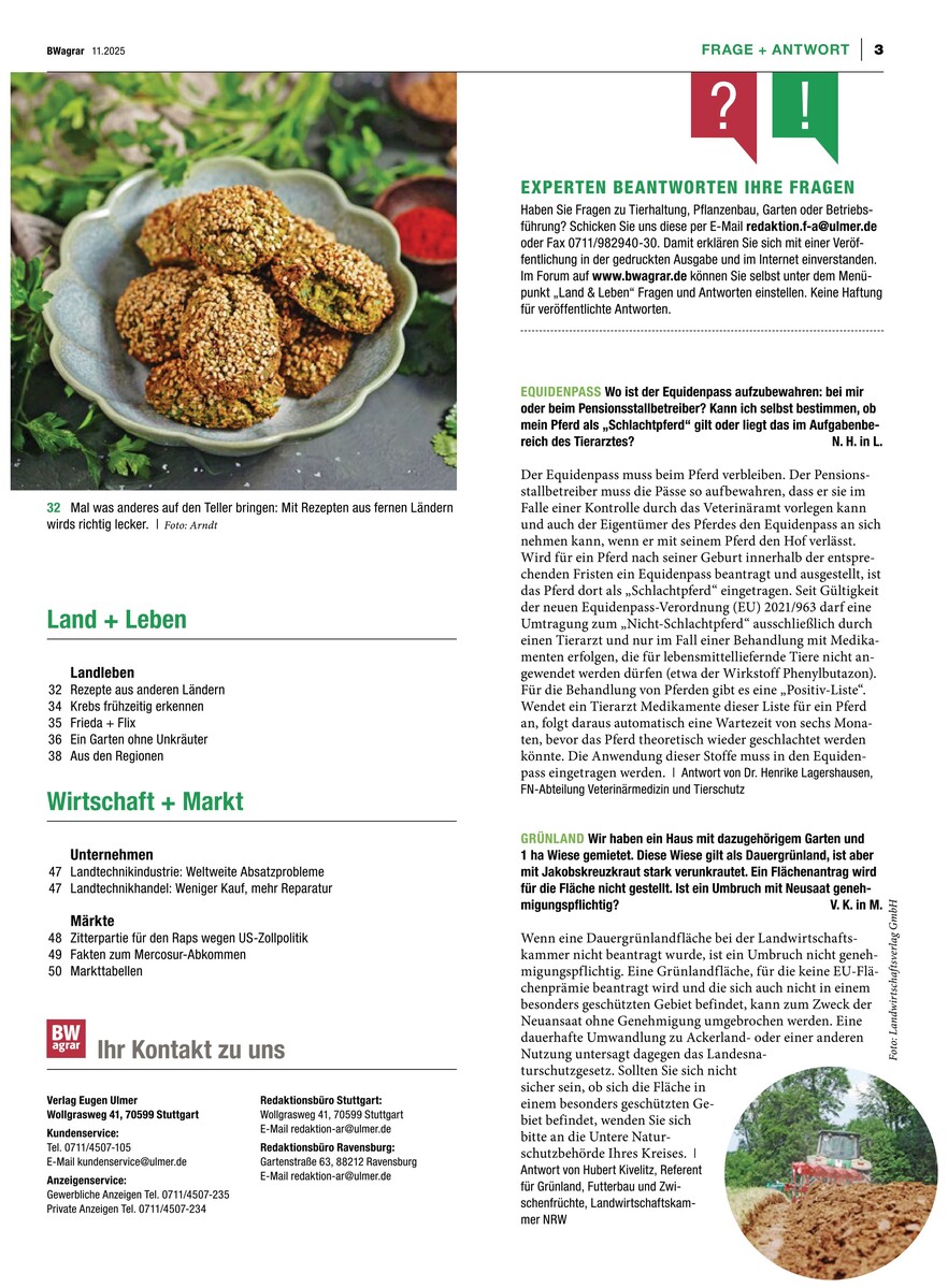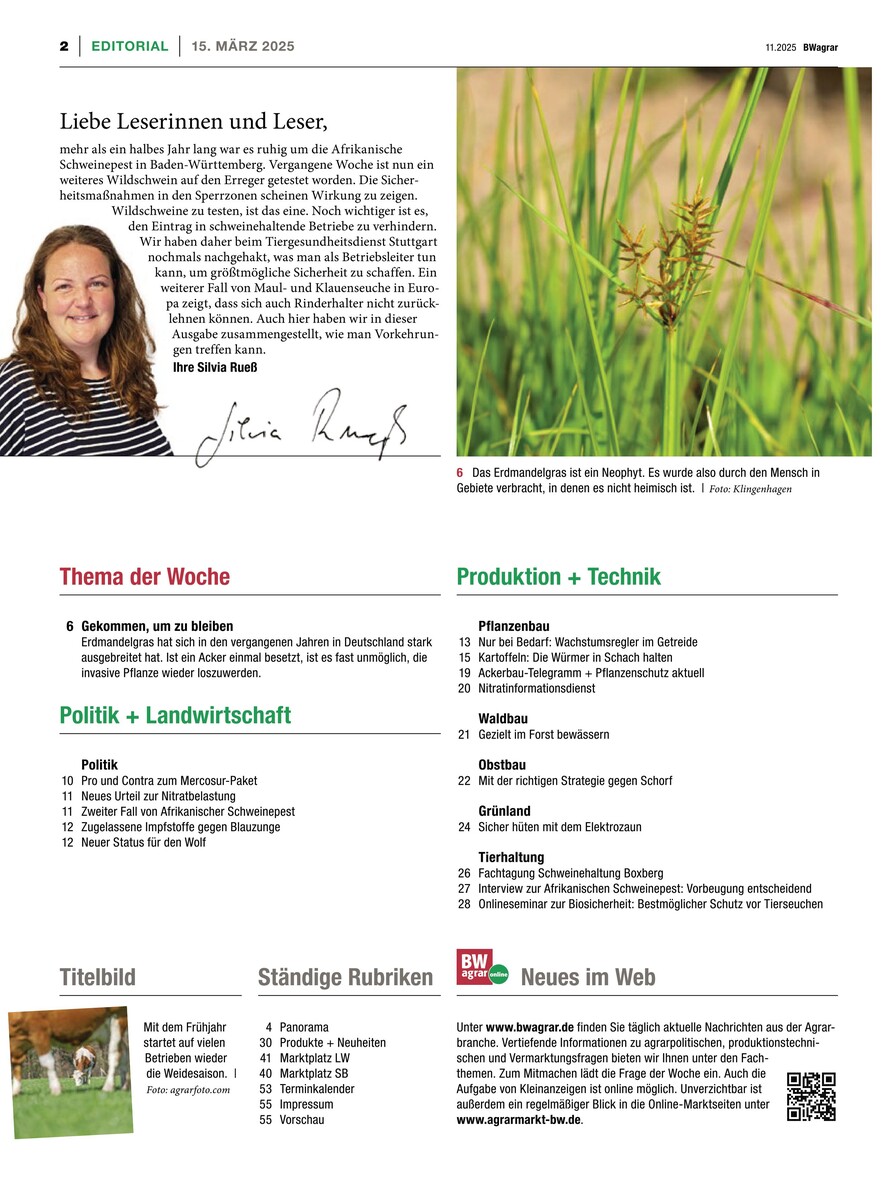 Gesamtes Inhaltsverzeichnis anzeigenSchwäbischer Bauer 11/2025