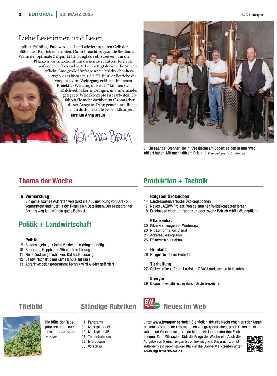 Gesamtes Inhaltsverzeichnis anzeigenSie haben ein BWagrar Print-Abo? Rabattiertes BWagrar Digital-Upgrade bestellen