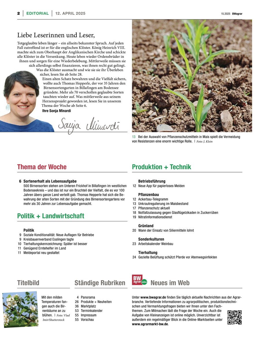 Gesamtes Inhaltsverzeichnis anzeigenSchwäbischer Bauer 15/2025
