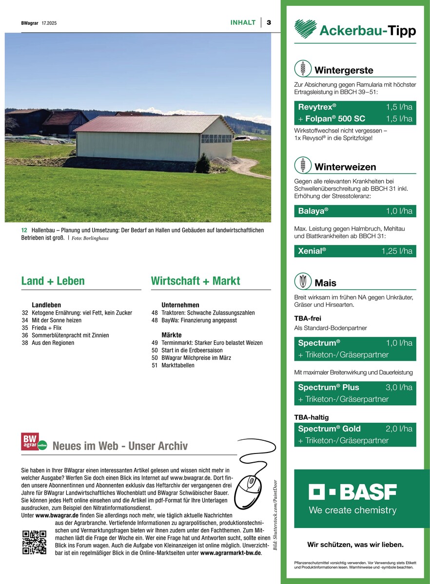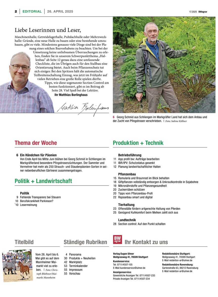 Gesamtes Inhaltsverzeichnis anzeigenSchwäbischer Bauer 17/2025