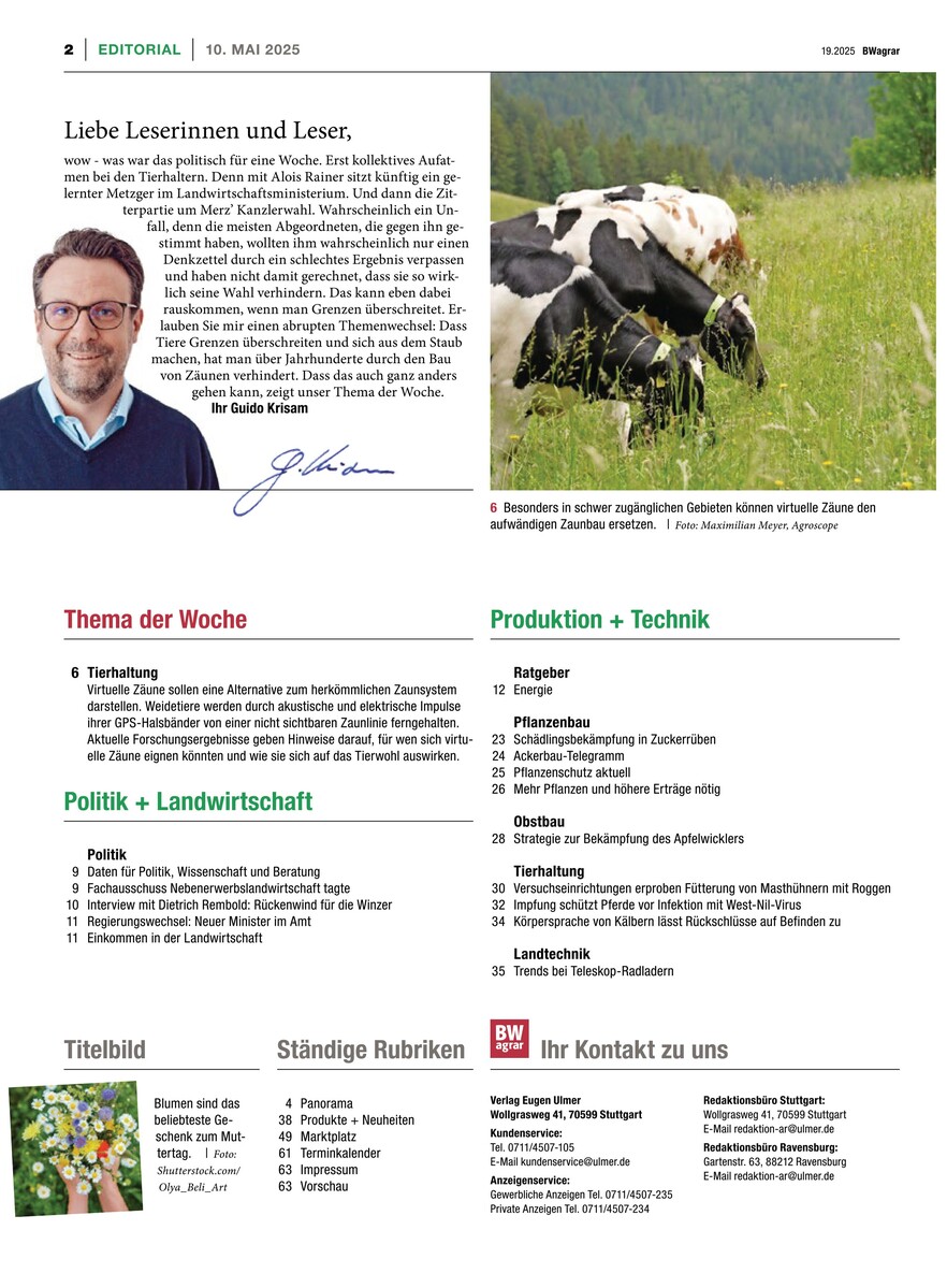 Gesamtes Inhaltsverzeichnis anzeigenSchwäbischer Bauer 19/2025