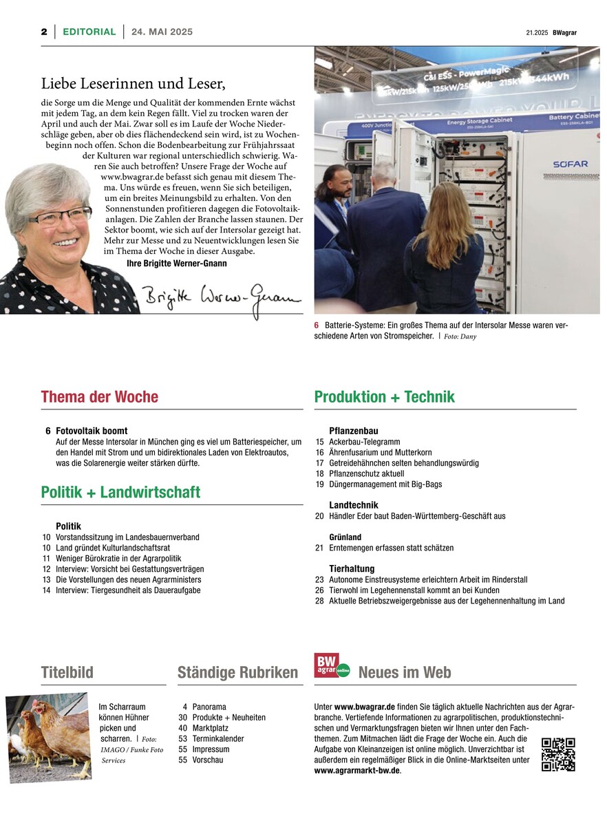 Gesamtes Inhaltsverzeichnis anzeigenSie haben ein BWagrar Print-Abo? Rabattiertes BWagrar Digital-Upgrade bestellen
