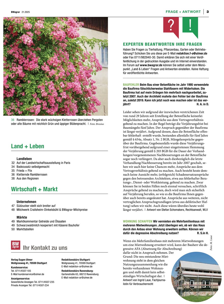 Gesamtes Inhaltsverzeichnis anzeigenSchwäbischer Bauer 21/2025
