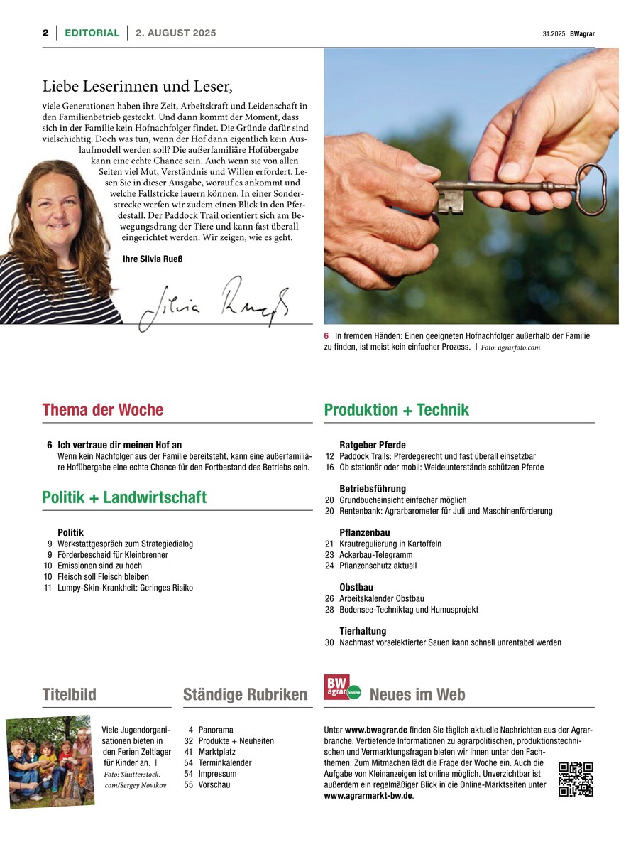 Gesamtes Inhaltsverzeichnis anzeigenSchwäbischer Bauer 31/2025