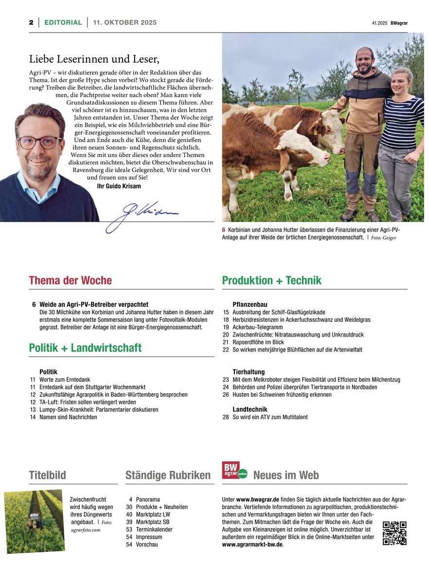Gesamtes Inhaltsverzeichnis anzeigenSchwäbischer Bauer 41/2025