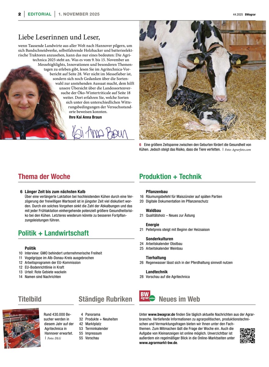 - Die Regionalausgabe BWagrar als E-Paper 3 Tage vor der gedruckten Ausgabe