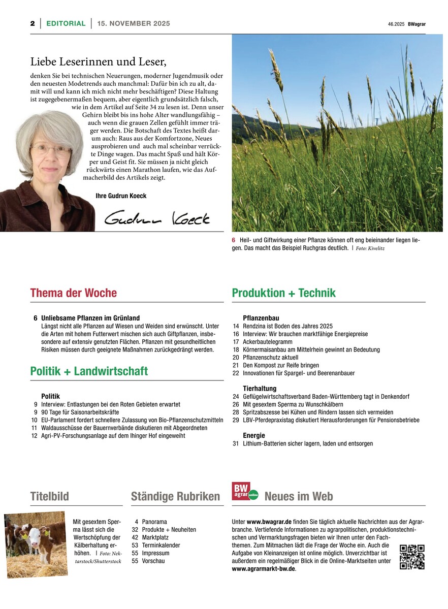 Gesamtes Inhaltsverzeichnis anzeigenSie haben ein BWagrar Print-Abo? Rabattiertes BWagrar Digital-Upgrade bestellen