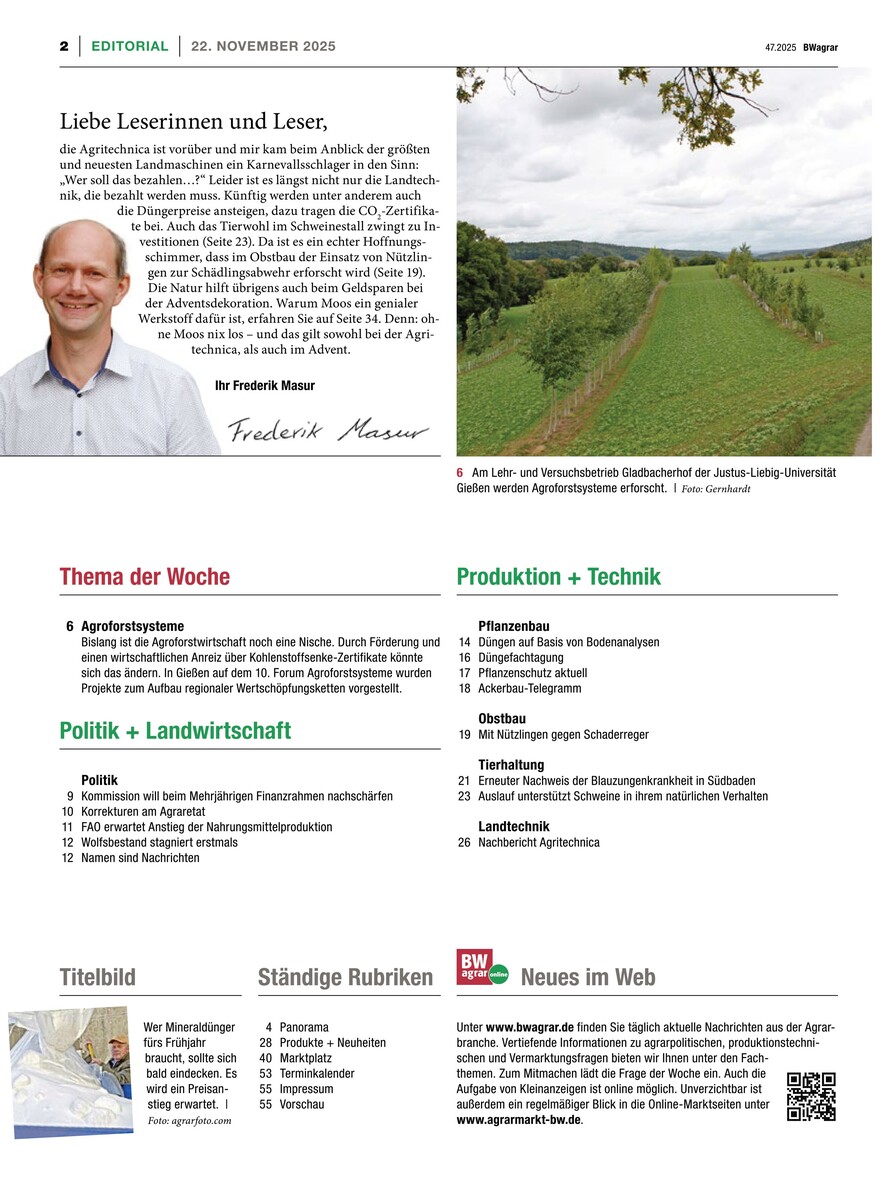 Gesamtes Inhaltsverzeichnis anzeigenSie haben ein BWagrar Print-Abo? Rabattiertes BWagrar Digital-Upgrade bestellen