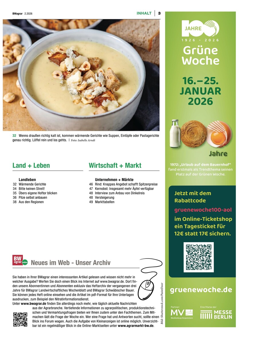 Gesamtes Inhaltsverzeichnis anzeigenSchwäbischer Bauer 02/2026