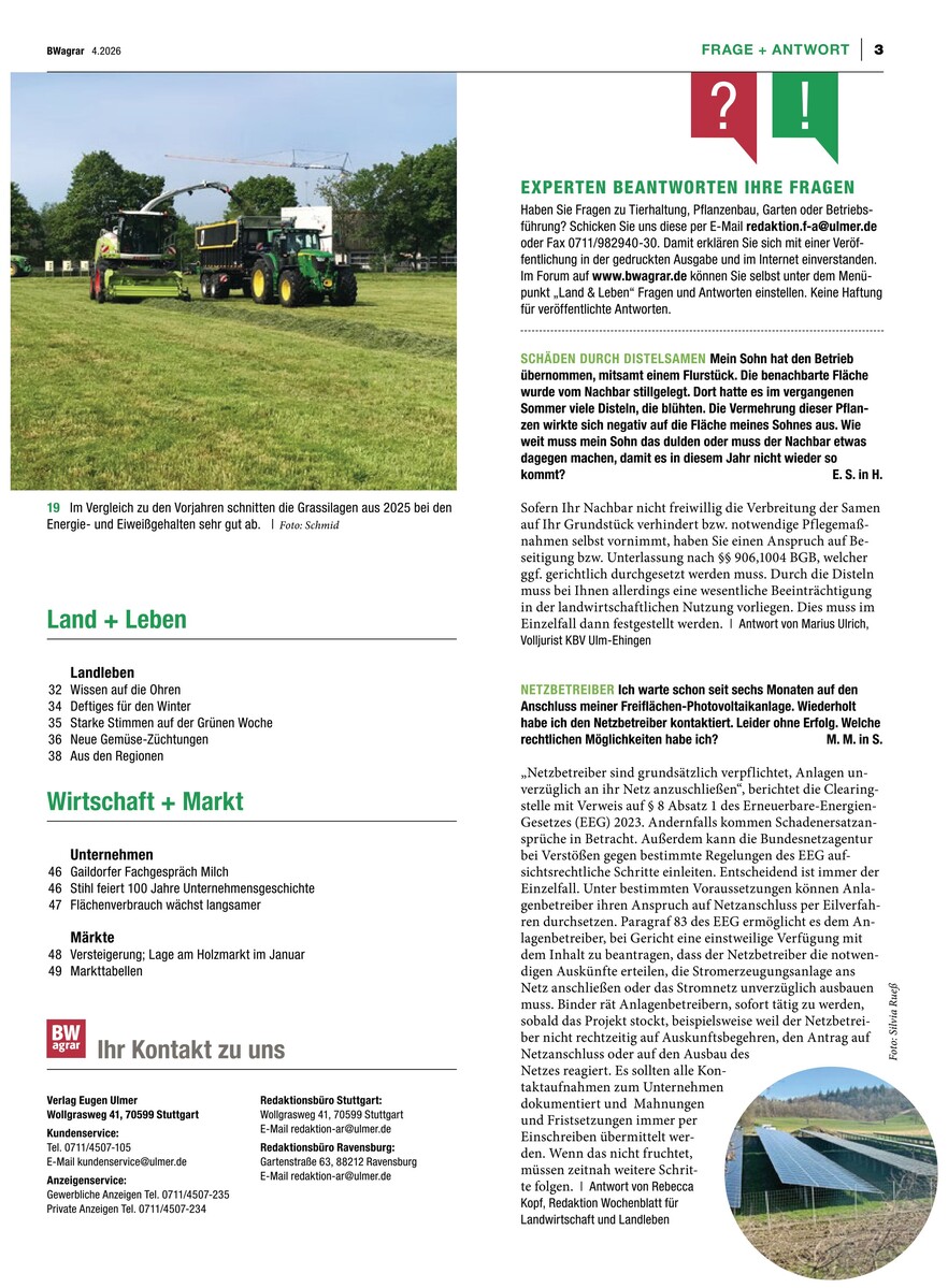 Gesamtes Inhaltsverzeichnis anzeigenSie haben ein BWagrar Print-Abo? Rabattiertes BWagrar Digital-Upgrade bestellen
