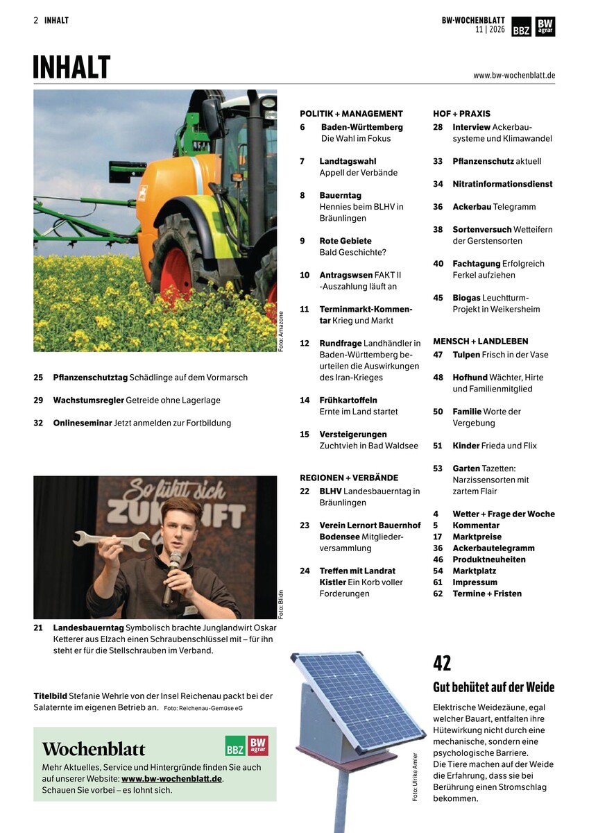 Gesamtes Inhaltsverzeichnis anzeigenSie haben ein BWagrar Print-Abo? Rabattiertes BWagrar Digital-Upgrade bestellen