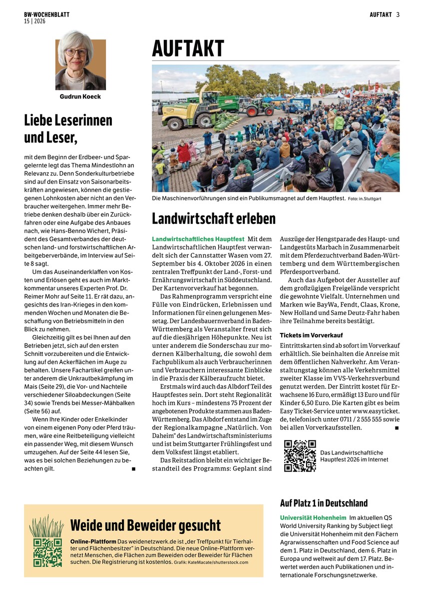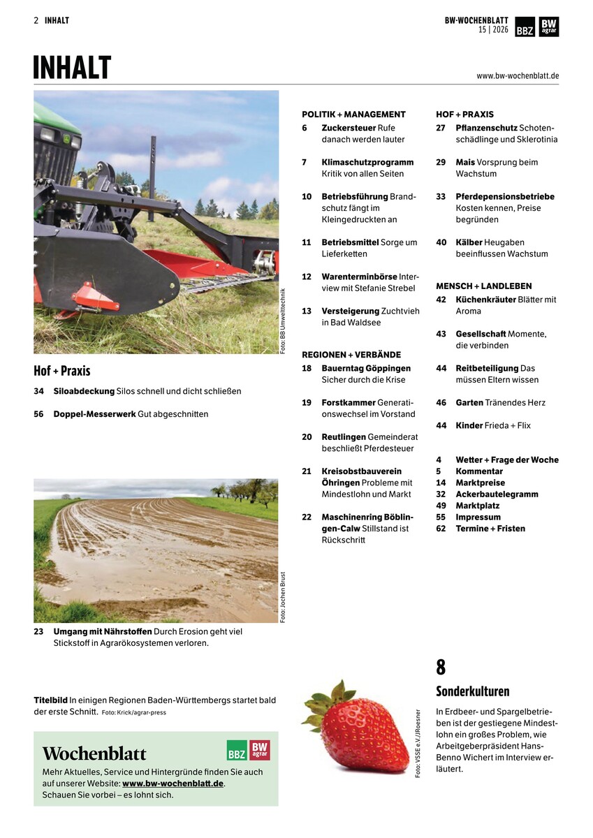 Gesamtes Inhaltsverzeichnis anzeigenSchw�bischer Bauer 15/2026