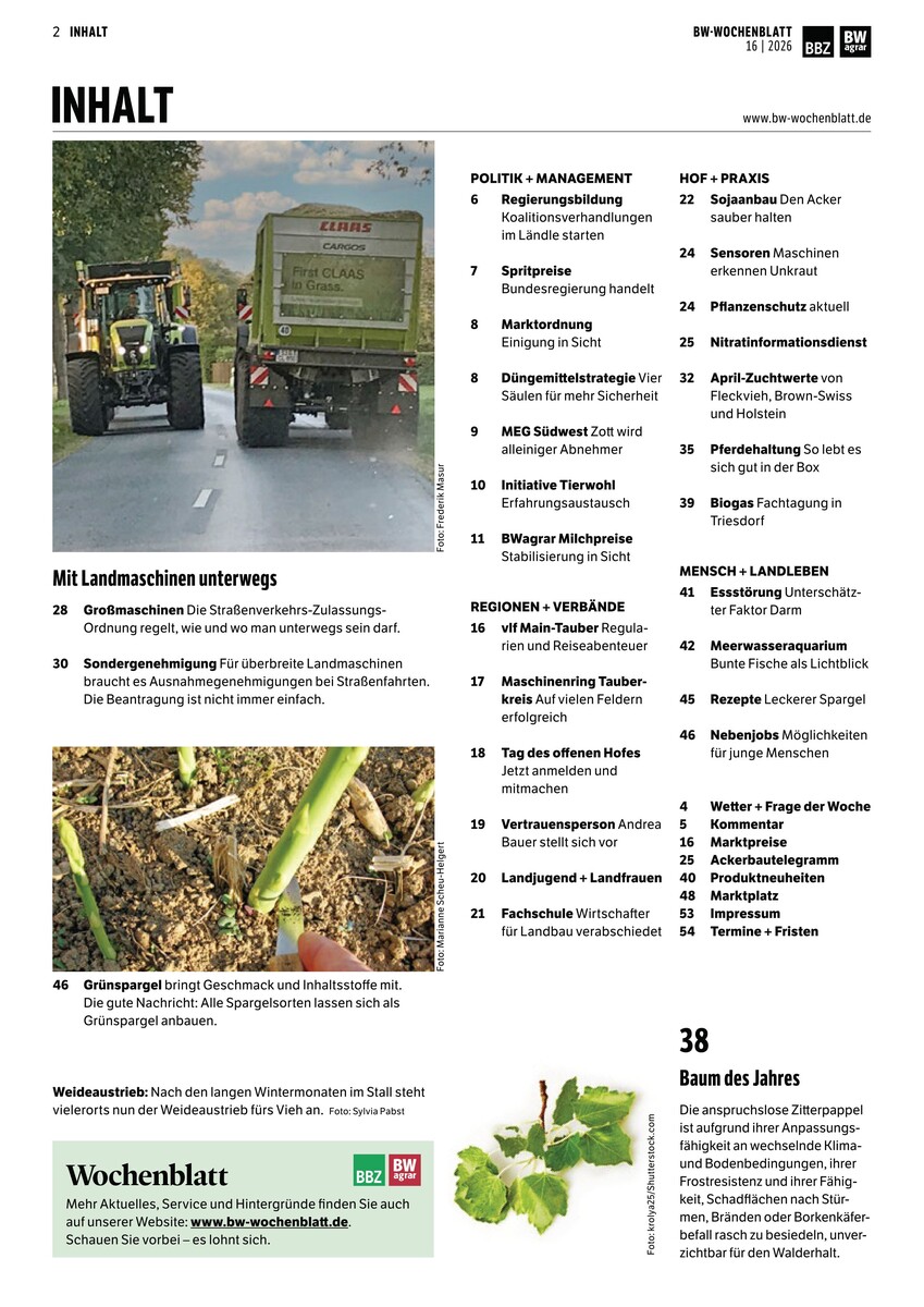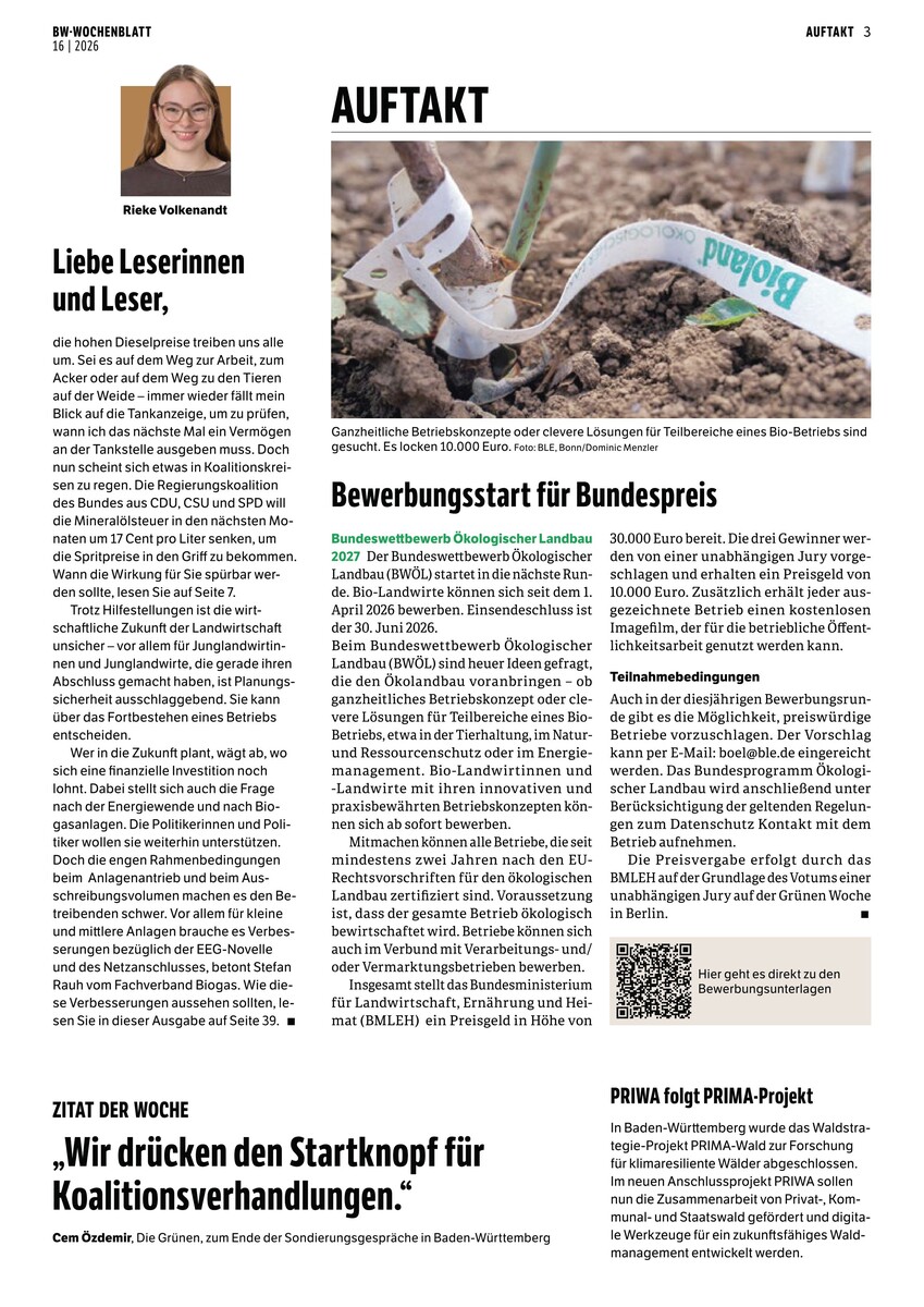 Gesamtes Inhaltsverzeichnis anzeigenSchw�bischer Bauer 16/2026