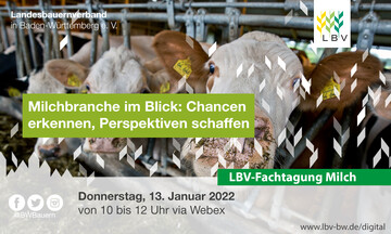 Der Landesbauernverband veranstaltet am Donnerstag, den 13. Januar 2022 von 10 Uhr bis 12 Uhr die digitale Fachveranstaltung "Milchbranche im Blick: Chancen erkennen, Perspektiven schaffen". Die Gesprächsleitung hat Ariane Amstutz, LBV-Pressesprecherin.