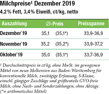 Die Erzeugerpreise für Milch waren 2019 deutlich stabiler als in den meisten Vorjahren. Auch die sonst übliche Sommerdelle blieb 2019 aus. Zu Beginn des neuen Jahres 2020 sollen die Erzeugerpreise stabil bleiben.