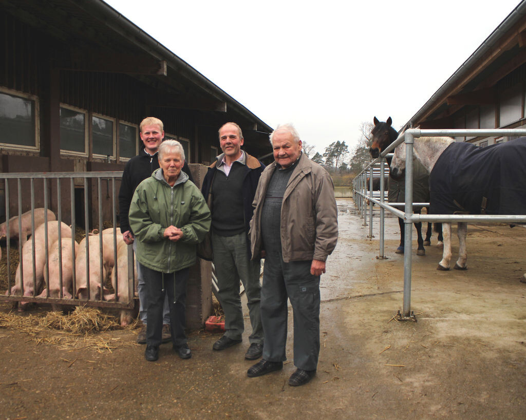 „Jetzt ist hier alles ganz anders als früher“, beginnt Christian Reutter, der den Betrieb im Jahr 1998 übernommen hat. „Das kann man sich heute gar nicht mehr vorstellen.“ Reutters haben 40 Pensionspferde, 50 Zuchtsauen mit Nachzucht, 24 Milchkühe, Ackerbau, Grünland und Streuobst, das zu Edelbränden verarbeitet wird. Ungewöhnlich vielschichtig für die heutige Zeit. Begonnen hat alles mit dem elterlichen Betrieb von Erwin Reutter, der damals mitten im Ort stand. „Das war kein landwirtschaftlicher Betrieb im heutigen Sinne, es war ein Haus, wie jedes andere auch“, erklärt Erwin Reutter die Situation nach dem Krieg. Alles war auf den Hausgebrauch ausgerichtet: fünf bis sechs Kühe, zwei bis drei Schweine und rund 20 Hektar Ackerland.
