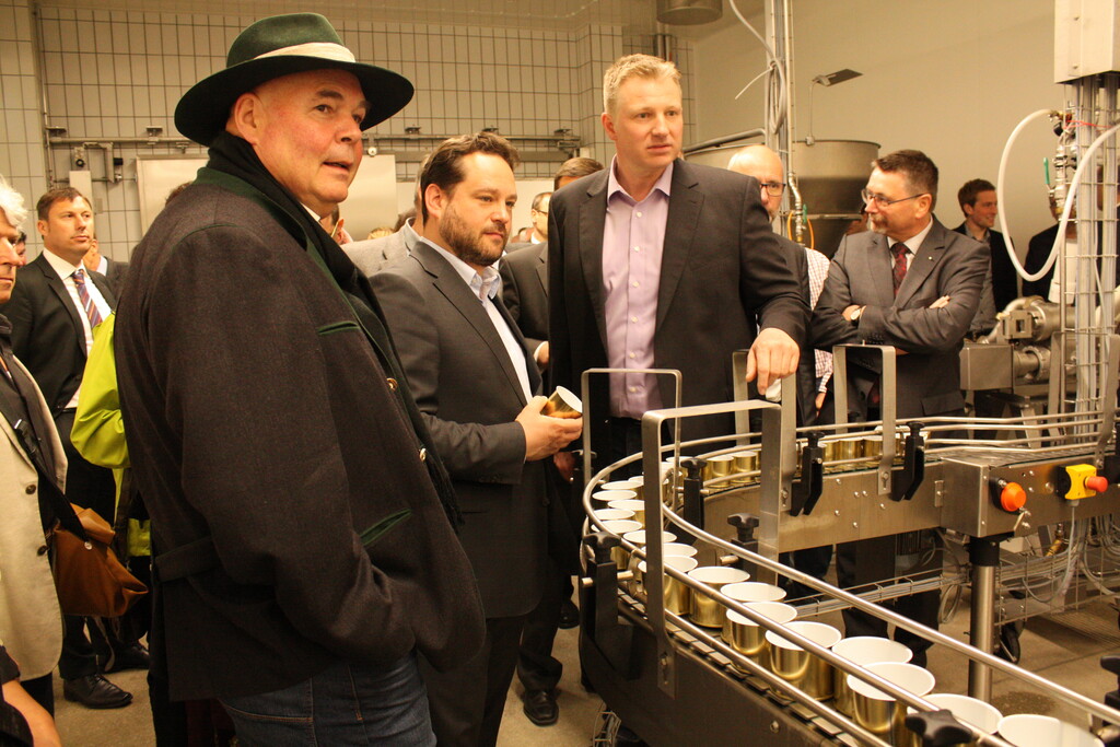 Ebenso unterstützt die Investition nach Aussage Bondes den Trend zur Regionalität, denn „regional ist erste Wahl“. Bäuerliche Betriebe sind der Schlüssel für eine nachhaltige Landwirtschaft. „Sie setzen erfolgreich auf Qualitätsführerschaft, den besonderen Umgang mit ihren Tieren und legen Ihren Schwerpunkt auf der ökologischen Produktion ohne Gentechnik“, lobte Bonde die Erzeugergemeinschaftsmitglieder. Beim anschließenden Rundgang durch die neue Wurstmanufaktur konnten sich Minister und Gäste ein Bild von der Dosenwurstherstellung machen, in der insgesamt 20 und im Kernbereich acht Mitarbeiter beschäftigt sind.