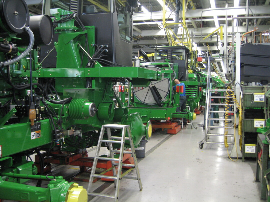 Angesichts schwierigerer wirtschaftlicher Rahmenbedingungen auf einigen Exportmärkten und der Konsolidierung des Produktionsprogramms sank die Traktorenproduktion in Mannheim um 15 Prozent auf 29.000 (34.000) Einheiten. Infolgedessen wurden auch in Bruchsal mit 31.400 (38.000) Einheiten weniger Fahrerkabinen gefertigt. Vor allem aufgrund der Ausweitung seines Produktionsprogramms bei großen Mähdreschern und eines Modellwechsels bei Feldhäckslern fertigte das John Deere Werk Zweibrücken mit insgesamt 2.000 (2.800) Maschinen 29 Prozent weniger Erntemaschinen als im Vorjahr, in dem bereits Maschinen für 2015 vorproduziert worden waren.