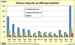 Gestiegen sind auch überwiegend aus der EU und Deutschland stammende Importe wie Kindermilchpulver (+39 Prozent), Käse (+66 Prozent) und H-Milch (+72 Prozent). Für die rund 50 Prozent mehr Menge musste China nur rund 25 Prozent mehr Geld ausgeben. Ob dieser Anstieg der Nachfrage eine Trendwende oder nur ein Strohfeuer ist, bleibt abzuwarten. Immerhin weisen diese Zahlen darauf hin, dass der Importbedarf wieder steigt. Der Global Dairy Trade Tender in Neuseeland zeigte beim letzten Handelstermin am 1.März zum ersten Mal seit Jahresbeginn zumindest wieder leicht nach oben.