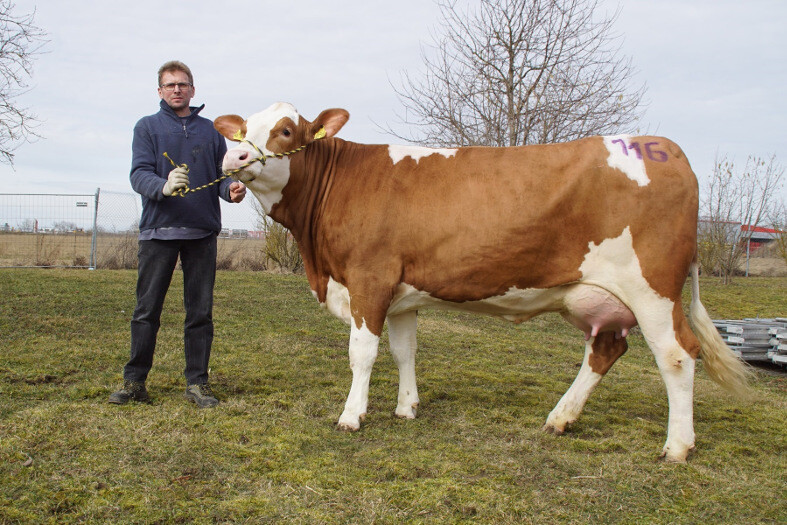 Fleckvieh: Von den 4 angebotenen Jungbullen wurden drei für durchschnittlich 2167 Euro verkauft. An der Spitze rangierte ein gut typisierter und sehr korrekter Vlinno-Sohn aus einer bewährten tiefen Kuhlinie von Familie Wieland aus Schwäbisch Hall – Otterbach, der auch mit 2250 Euro den Tageshöchstpreis erlöste. Von überwiegend sehr guter Qualiät waren auch die 37 angebotenen Jungkühe. Bei sehr flottem Marktverlauf wechselten alle bis auf ein Tier mit Euteransage zum Durchschnittspreis von 1565 Euro den Besitzer. Wie auch bei den Holsteinjungkühen waren hier über 90 Prozent der Tiere GVO-frei gefüttert.