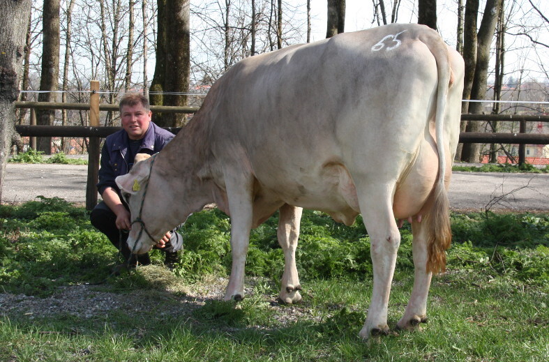 Bei den Stieren war bereits im Vorfeld aufgrund der zahlreichen Anmeldungen mit einem großen Auftriebe gerechnet worden. Tatsächlich vorgestellt wurden dann 23 Kandidaten. Allerdings musste hier die Körkommission aufgrund zum Teil doch gravierenderer Mängel nochmals aussortieren, so dass letztendlich nur 16 Jungstiere zum Verkauf kamen. Auffallend war, dass doch mehrere Stierer deutlich älter als sonst waren. Die Aufzüchter haben offensichtlich auf die beste Verkaufszeit gewartet, die traditionell im Frühjahr zum Weideaustrieb gegeben ist. Dennoch hielten sich die Käufer, die vor Auktionsbeginn noch zahlreich im Stall die Verkaufskandidaten in Augenschein nahmen, im Ring dann zurück und jeder zweite Stier wurde aufgrund zu geringen Gebotes zunächst nicht abgegeben. Am Ende war dann aber doch fast jeder Stier verkauft – und das zu einem um 40 Euro höheren Schnittpreis als vor drei Wochen. Den Tageshöchstpreis erhielt mit 1940 Euro ein sehr gut entwickelter Huvi-Sohn aus einer Husjet mit 3,6-jährigem Schnitt von 13591 kg Milch bei 3,99 % Fett und 3,70 % Eiweiß von Andreas Lingenhel, Oberstaufen-Gschwend. Mit guten genomischen Leistungs- und besten Exterieurzuchtwerten ging er ins benachbarte Tirol.