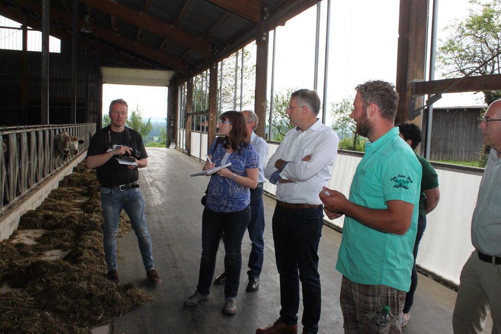 Egon Braun vom KBV Allgäu-Oberschwaben machte deutlich, dass die Milchkühe im grünen Allgäu nicht mher wegzudenken seien. Die Milchwirtschaft ist in bäuerlicher Hand (49 Kühe pro Betrieb) und ist ein wichtiger Arbeitgeber für das Handwerk und den Mittelstand. Christoph Stauber betonte, dass die Motivation der Junglandwirte sehr gut sei, die Höfe weiterzuführen. Die Landwirtschaft gehöre zu den schönsten Berufen, die man sich vorstellen könne. Problem seien zum einen die hohen Geldbeträge, die in der Landwirtschaft bewegt werden müssen bei gleichzeitig stagnierenden oder sinkenden Einnahmen. Zum anderen würden sich die Rahmenbedingungen mit Auflagen, Gutachten, Genehmigungen und vielem mehr verschlechtern. „Unserer Arbeitszeit verlagert sich zunehmend ins Büro“, erläuterte Stauber seine Erfahrungen. Stauber ist froh, dass er bereits 2009 gebaut hat. Damals waren die Baukosten deutlich niedriger und der Milchpreis hat in den Jahren danach wieder angezogen, so dass der Kapitaldienst zu schultern war. So waren bei ihm in der Milchkrise 2016 die Belastungen nicht mehr ganz so hoch. Er hat zudem die Investitionen auf Null gesetzt und geschaut wie man am besten durchkommt, sagte er.