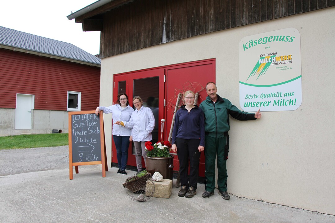 „Ohne jeglichen Druck den Betrieb weiterführen zu müssen, hatten plötzlich zwei meiner drei Töchter die Idee, den Hof gemeinsam fortzuführen“, erinnert sich Gerhard Bullinger zurück. Zu diesem Zeitpunkt hatte die heute 25-jährige Eva ihre erste Ausbildung zur Bauzeichnerin abgeschlossen. Für sie stand fest, dass sie zurück auf den Hof will und begann im Herbst 2011 mit der Ausbildung zur Landwirtin, die sie im Sommer 2016 mit dem Abschluss „Techniker für Landbau“ in Triesdorf abgeschlossen hat. Einen anderen Weg hat Nesthäkchen Mareike eingeschlagen: Direkt nach dem Abitur 2012 ging es für sie nach Nürtingen, um dort Agrarwirtschaft zu studieren. Schon während der Ausbildungszeit kam der Gedanke auf, den Betrieb gemeinschaftlich als Schwestern in irgendeiner Weise weiter zu führen. Beide Mädels haben sich zu dieser Zeit mit der Milchviehhaltung beschäftigt. Die Bachelorarbeit rückte näher und Mareike begann sich mit dem Thema Direktvermarktung – einem stillen Traum von ihr – näher auseinander zu setzen. Eine Idee, die auch für die Eltern einen gewissen Charme hatte.